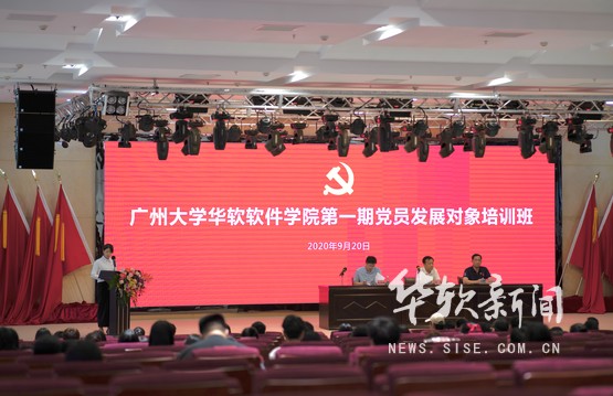 本网讯 9月20日上午,广州大学党校华软软件学院分党校第1期党员发展对象培训班在图书馆学术报告厅开班。学院院长张强,学院党委书记刘友坤,党委副书记张高峰,各系党总支书记,各系党校负责老师及201名发展对象参加了开班典礼。开班典礼由学院党委副书记张高峰主持。