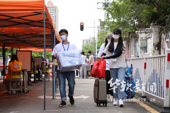 “来到华软心情很激动,看到志愿者在烈日下工作,感同身受,于是我自愿留下来帮志愿者分担工作。”2020级软件工程系吴金泽同学说。