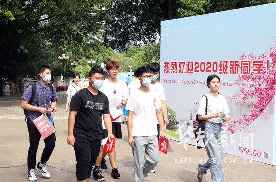 报到当天,新生持《录取通知书》、身份证、个人档案、《2020级新生报到表》《2020级本科新生学分修读方案志愿表》、家长已签名确认的《2020年新生军训家长知情书》到报到系排队注册。除现场报到外,新生也可进行网上自助报到,只需按网上指引操作,便可提前注册,大大提高了注册效率。另外,为确保学生不因家庭困难而无法入学,学院还在各系注册点设立“绿色通道”,为新生排忧解难。