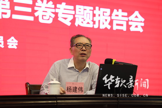 “人民对美好生活的向往永远是党的奋斗目标”。杨主任说,坚持以人民为中心的发展思想在第三卷中被反复提及。党近一百年来所付出的一切努力都是为了人民幸福和民族复兴。中国特色社会主义进入新时代,新时代仍然属于社会主义初级阶段,以经济建设为中心,大力发展经济仍是重中之重。