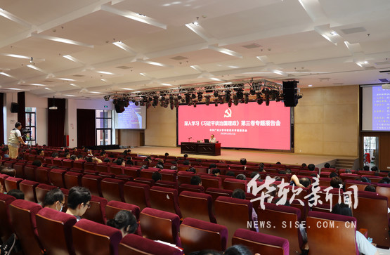本网讯 为进一步深入学习贯彻习近平新时代中国特色社会主义思想,深刻把握其核心要义、精神实质、实践要求,引导广大党员干部读原著、学原文、悟原理,推动学习贯彻往深里走、往心里走、往实里走,我院党委举办深入学习《习近平谈治国理政》第三卷专题报告会,邀请广东省委宣讲团成员、省委党史研究室主任杨建伟教授主讲。学院党委副书记张高峰、副院长康忠理、中层干部(助理)以及全体教工党员出席报告会。报告会由学院党委副书记张高峰主持。