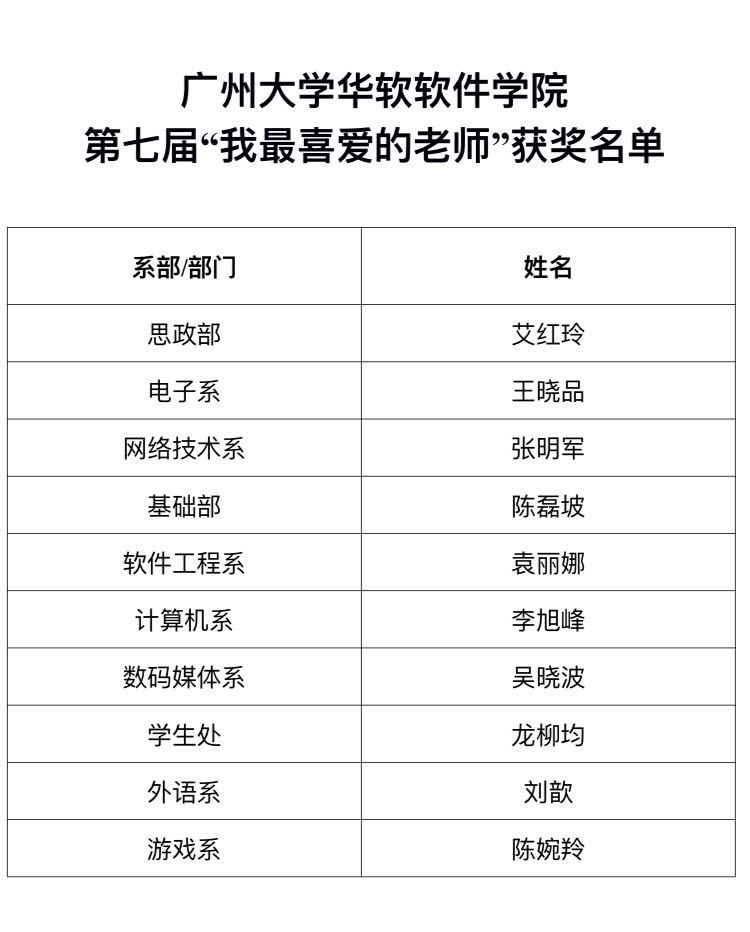 附件:广州大学华软软件学院第七届“我最喜爱的老师”获奖名单