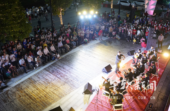 本网讯 11月20日晚上,“粤创之夜”社团风采街头艺术活动在从化温泉镇粤创街上演。广州大学华软软件学院学子带来乐队表演、独唱、朗诵、魔术、小品、武术表演等节目,展示校园文化艺术和良好的精神风貌,为从化区温泉镇粤创街注入青春活力。现场还设有科技成果、特色手艺及手工制品、益智类小游戏等展示摊位,吸引市民驻足观看。