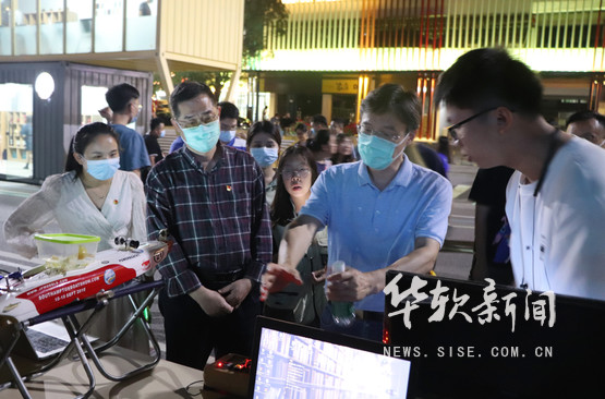 学院执行董事兼常务副院长迟云平陪同中共从化区委常委、统战部孙柱部长来到展示摊位,与同学们亲切交流并对同学们的创新作品给予高度评价。与此同时,学院党委书记刘友坤、副书记张高峰也来到创新创业作品展示区认真询问同学们科技作品的创作初衷,并鼓励同学们增强创新创业意识,提高自身综合素质。